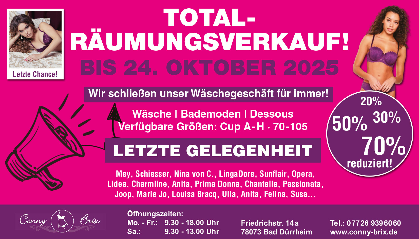 Verlängerung Total-Räumungsverkauf bis 24.10.2025